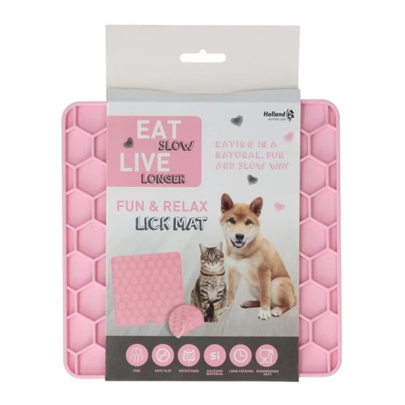 Csökkenti a szorongást, unalmat, rombolást, lassítja a habzsolást és még szuper szórakozás is kedvenceknek.Méret: 23 x 19 cm.Használható szaftos vagy folyékony falatokkal/jutikkal, B.A.R.F. menükhöz, nedves eledellel, gyógyszerek/kiegészítők beadására is.- Mosogatógépben mosható,- Fagyasztóba helyezhető,- Az alján lévő kis tapadókorongokkal a talajhoz, csempéhez rögzíthető,- Kutyák és macskák is használhatják.