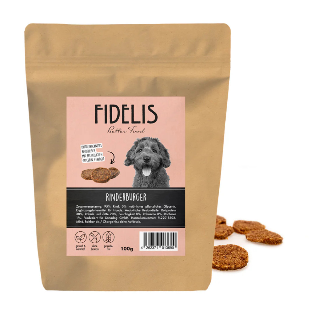 A marhából készült FIDELIS burgerrel kutyusod ellenállhatatlanul finom és egészséges jutalomfalatban részesül.