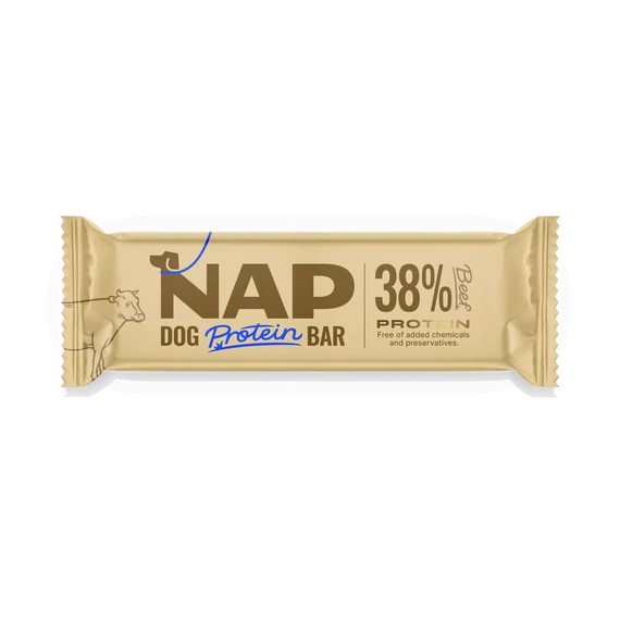 A NAP nem egy hagyományos jutalomfalat. Egy funkcionális protein szelet, amelyet kifejezetten aktív, sportoló, utazó vagy tréningben lévő kutyák igényeire fejlesztettek.