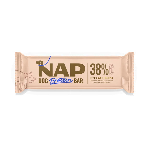 A NAP nem egy hagyományos jutalomfalat. Egy funkcionális protein szelet, amelyet kifejezetten aktív, sportoló, utazó vagy tréningben lévő kutyák igényeire fejlesztettek.