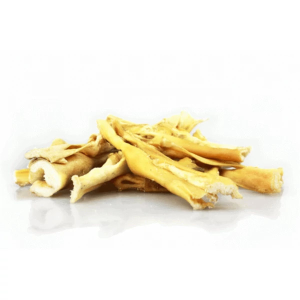 A szívós fejbőr szintén nem olyan vastag és kemény, mint a marhafejbőr, így különösen a kis- és közepes méretű kutyák megérik a pénzüket, és sokáig rághatják az aranysárga darabokat.